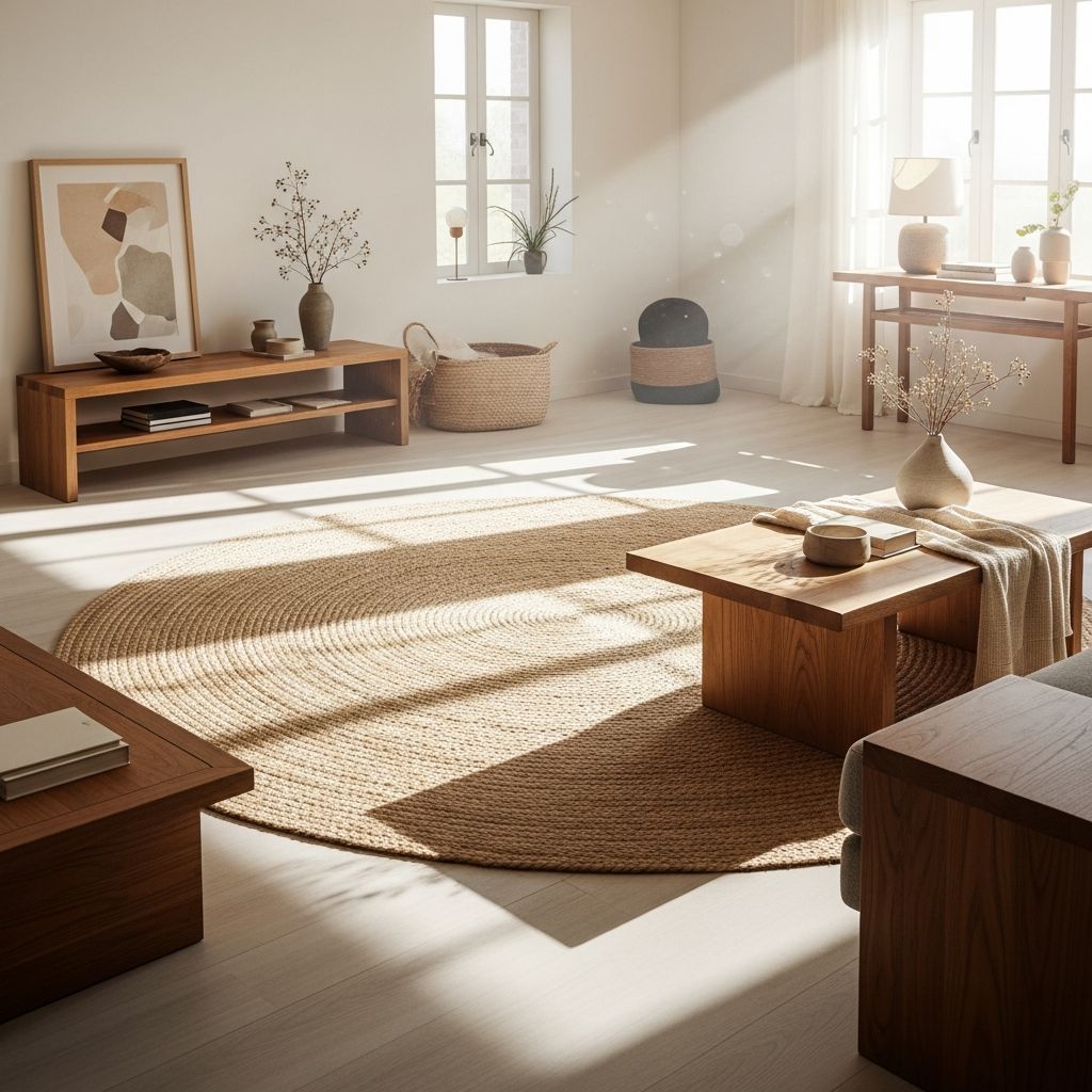 Caminar sobre materiales naturales como el yute, el sisal o la lana nos ayuda a mantenernos 'aterrizados'. Estas alfombras actúan como una barrera que absorbe el ruido y las vibraciones erráticas del suelo, proporcionando una base sólida y cálida. Al cubrir los suelos fríos con texturas orgánicas, el hogar se siente automáticamente más acogedor y energéticamente equilibrado.