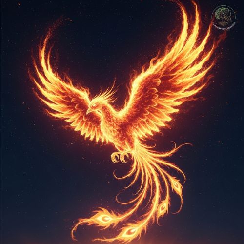El mítico fénix es el ave que arde en sus propias llamas y renace de sus cenizas. Es la imagen perfecta de la inmortalidad, el renacimiento y la vida eterna, recordándonos que incluso en la destrucción hay un renacer luminoso.