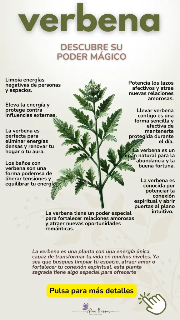 La verbena es una planta con una energía única, capaz de transformar tu vida en muchos niveles. Ya sea que busques limpiar tu espacio, atraer amor o fortalecer tu conexión espiritual, esta planta sagrada tiene algo especial para ofrecerte. Recuerda siempre usarla con respeto e intención para que su magia fluya de manera efectiva.
