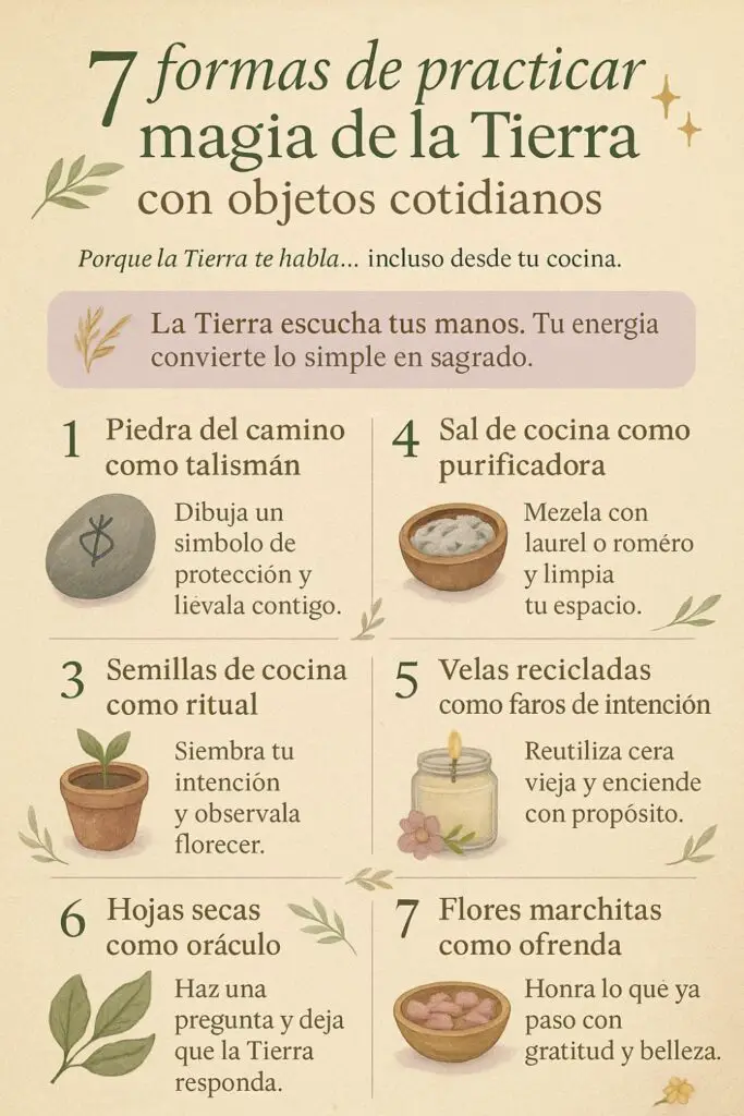 Desde entonces, he aprendido que la magia de la Tierra no necesita herramientas costosas ni rituales complejos. Está en lo simple. En lo cotidiano. En lo que ya tienes.