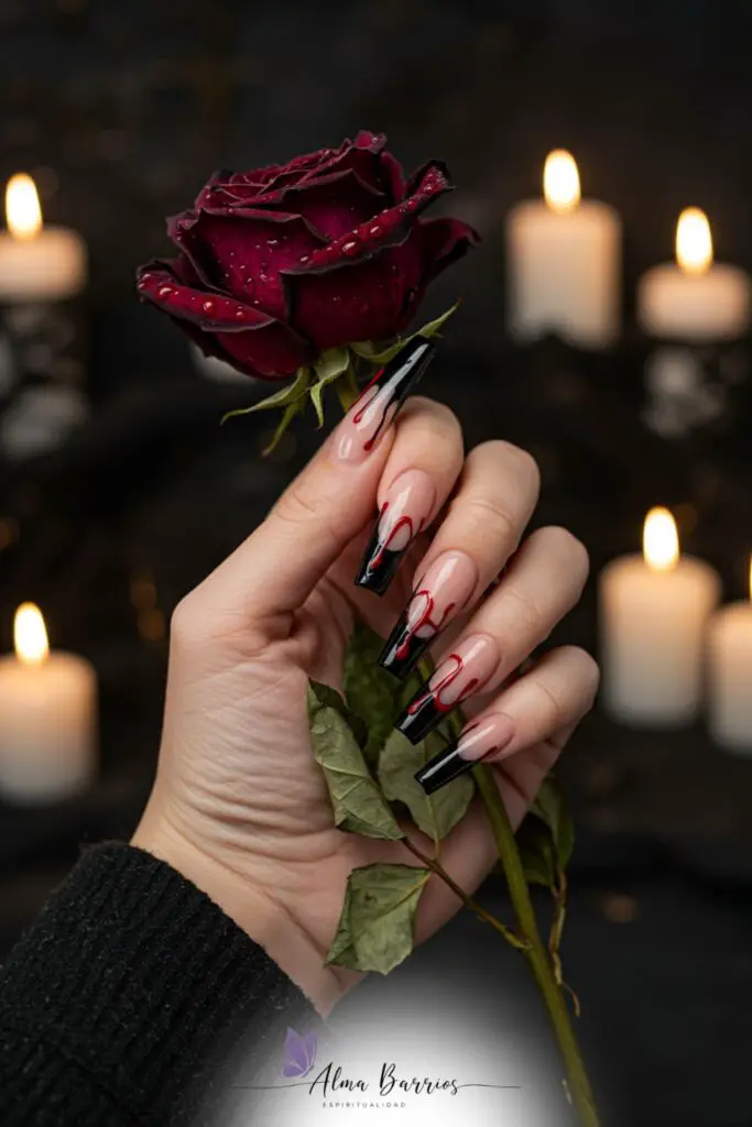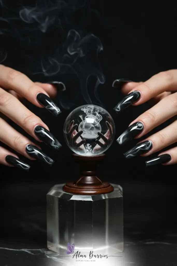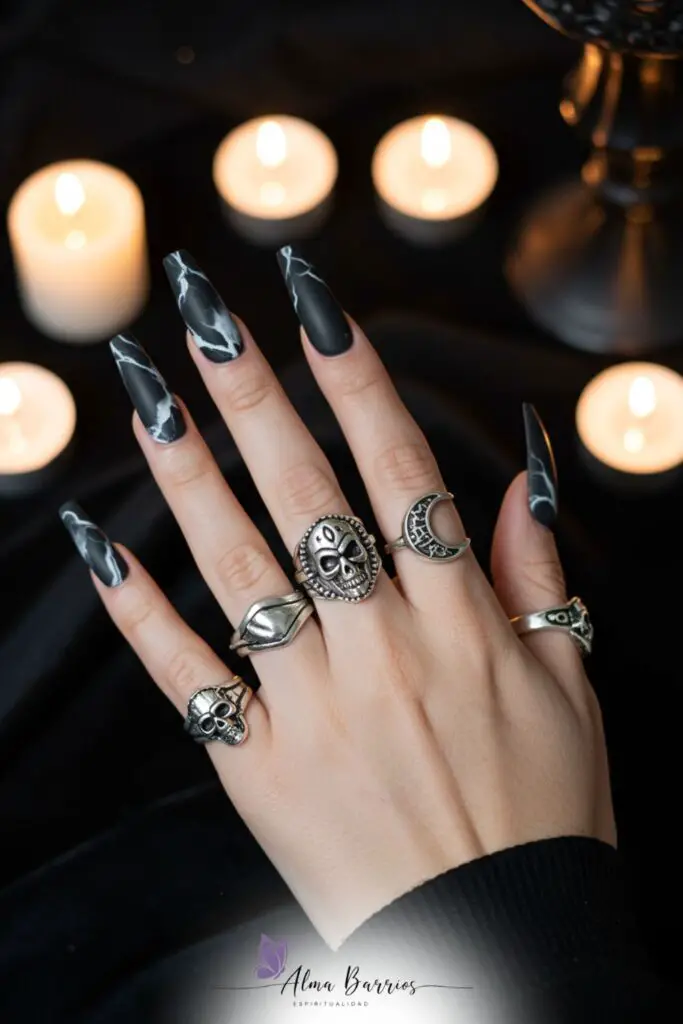 Pin2. Uñas Góticas con Efecto Mármol Negro